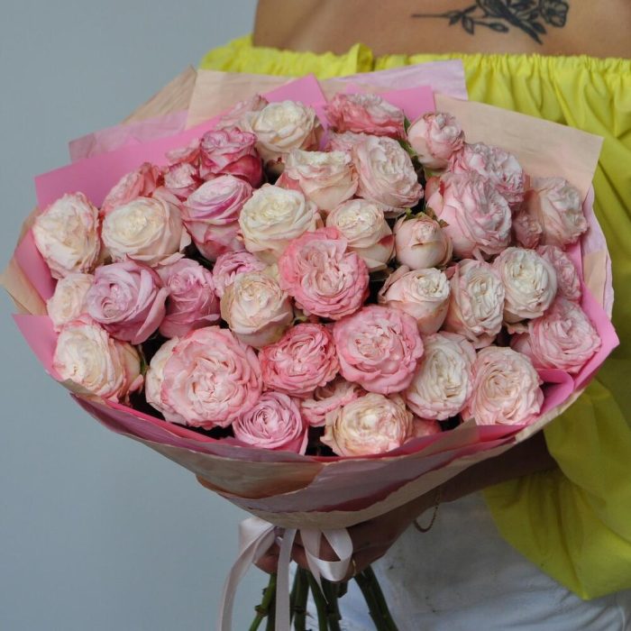 Очень необычные, кружевные розы сорта Бомбастик!Настоящее пионовидное чудо среди цветов!По желанию упаковку можно заменитьТакой букет можно заказать на: день влюбленных, 8 марта, день матери, крестины, рождение ребенка или внука, именины, годовщину бракосочетания.