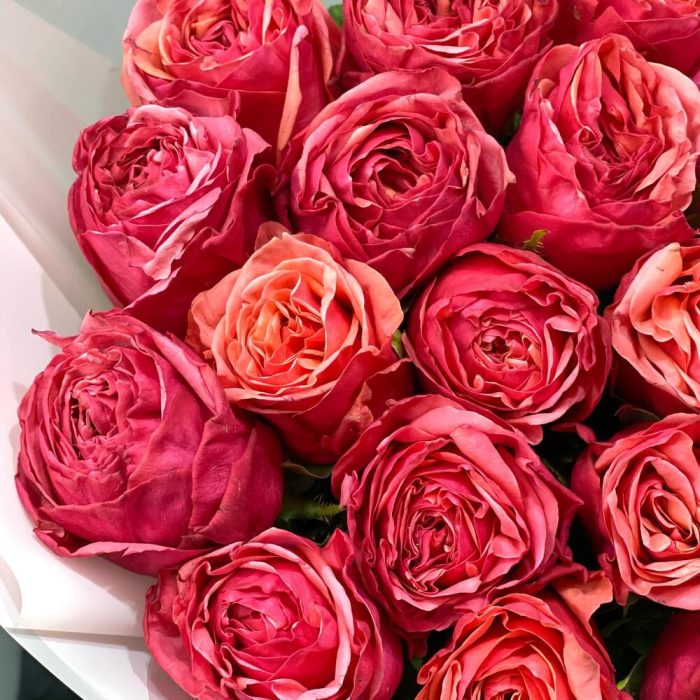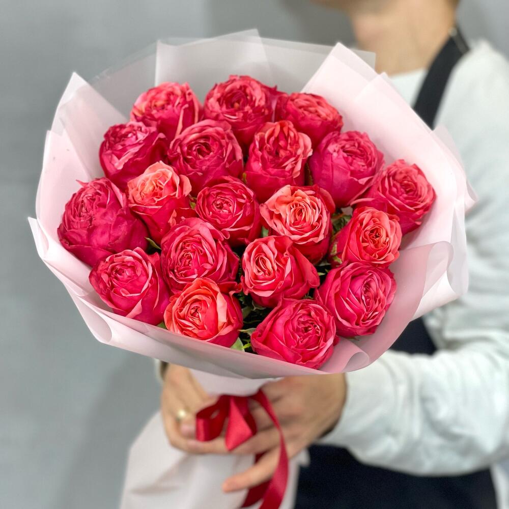 Лента атласная – 1 шт.Упаковка дизайнерская – 4 шт.bubble gum роза – 19 шт.
