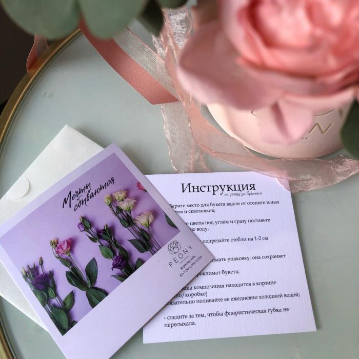 - Сроки возврата: Претензии по качеству букета принимаются в течение 24 часов с момента его получения.
