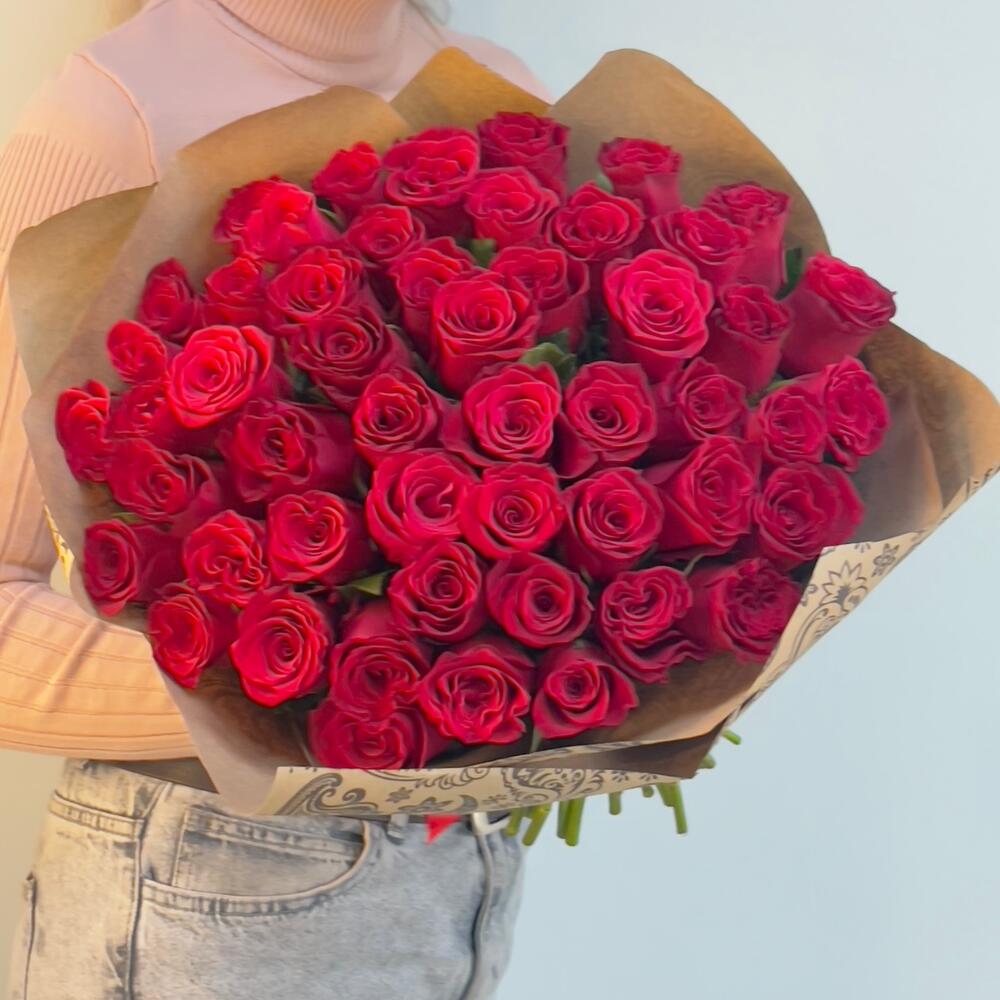 Роза – 51 шт.Лента атласная – 1 шт.Крафт упаковка – 4 шт.