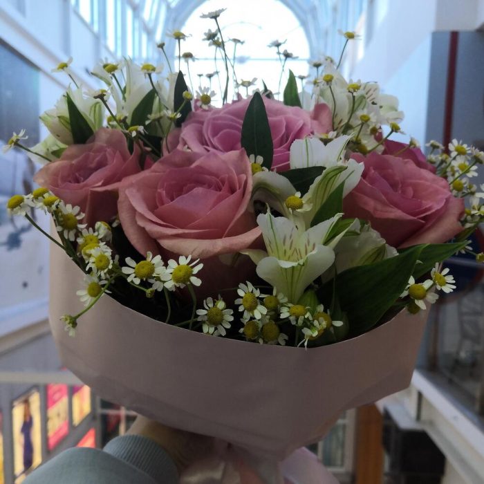 Категории: Альстромерии, Кустовые розы, Розы, Ромашки