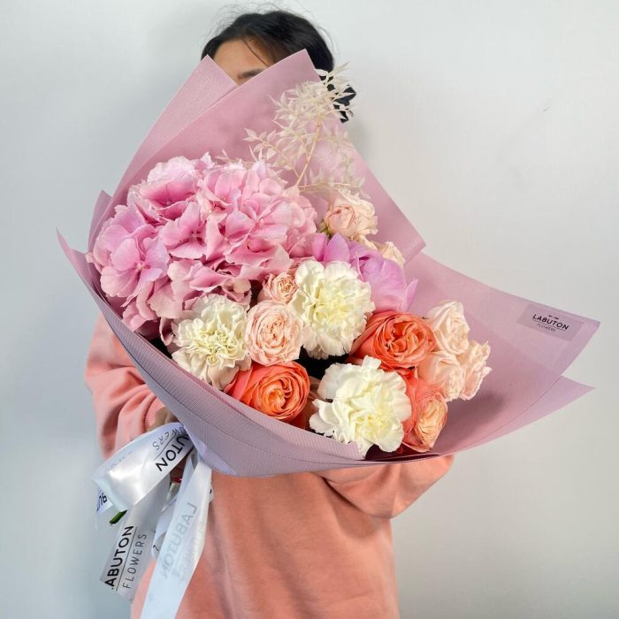 Альстромерии, Гвоздики, Кустовые розы, Лизиантусы, Розы, Хризантемы