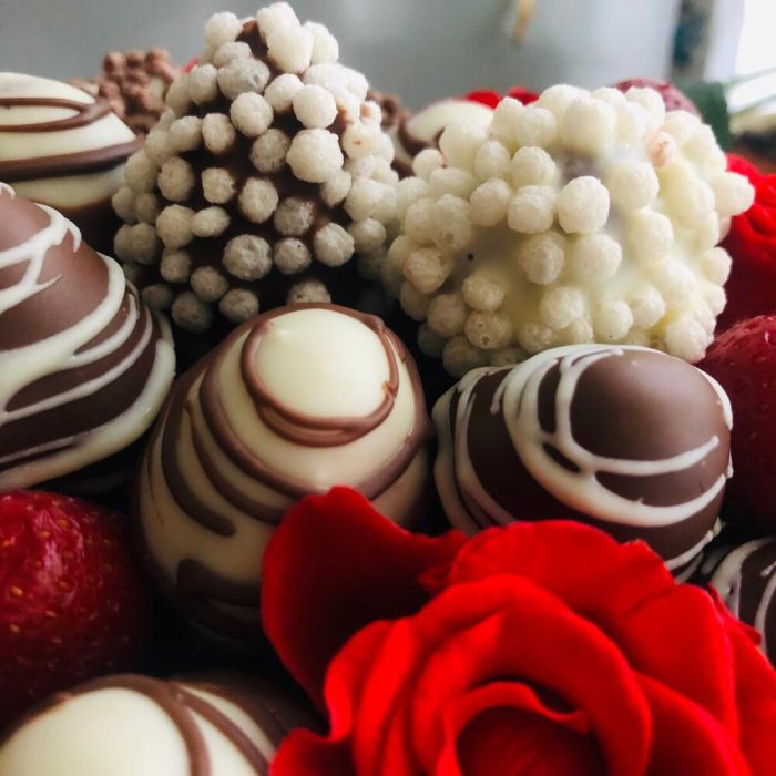 Роза – 7 шт.Лента атласная – 1 шт.Шляпная коробка – 1 шт.Клубника в шоколаде – 500 гр.