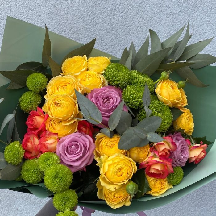 Категорий: Кустовые розы, Розы, Хризантемы, Хризантемы кустовые, Эвкалипт