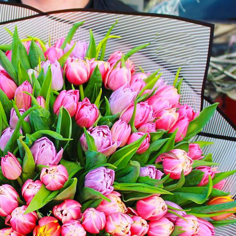 25 пионовидных сиреневых тюльпанов дабл прайс. Букет 200 Kimbirly Flowers