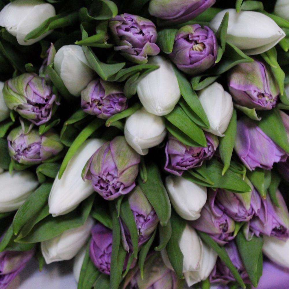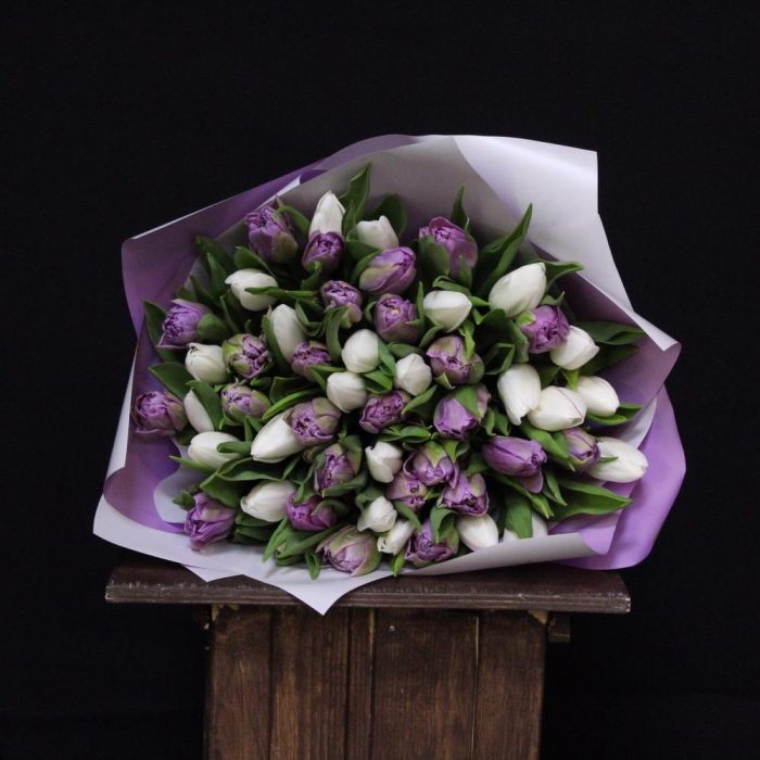 mono bouquet 49 из 51 тюльпана микс сортов double price и Royal Virgin