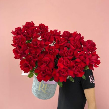 red roses in the box size m
