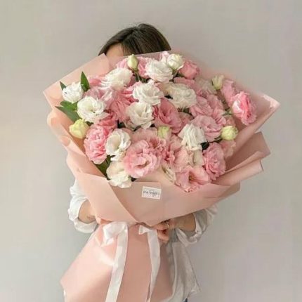 Корзина с розами, ирисами, кустовой хризантемой, альстромерией и лимониумом “Виноградная лоза”